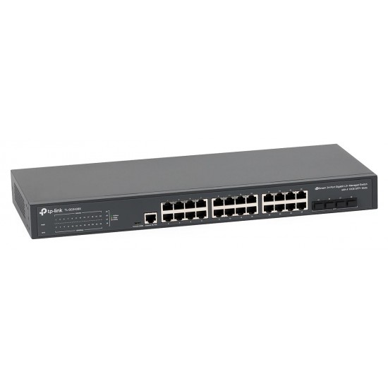 "JetStream™ 24-Port Gigabit L2+ Managed Switch with 4 10GE SFP+ Slots PORT: 24× Gigabit RJ45 Ports, 4× 10G SFP+ Slots, RJ45/Micro-USB Console Port SPEC: 1U 19-inch Rack-mountable Steel Case FEATURE: Integration with Omada SDN Controller, Static Routing, OAM, sFlow, DDM, 802.1Q VLAN, QinQ, STP/RSTP/MSTP, IGMP Snooping, 802.1p/DSCP QoS, ACL, 802.1x, Radius/Tacacs+ Authentication, LACP, CLI, SNMP, Dual Image/Configuration, IPv6 "